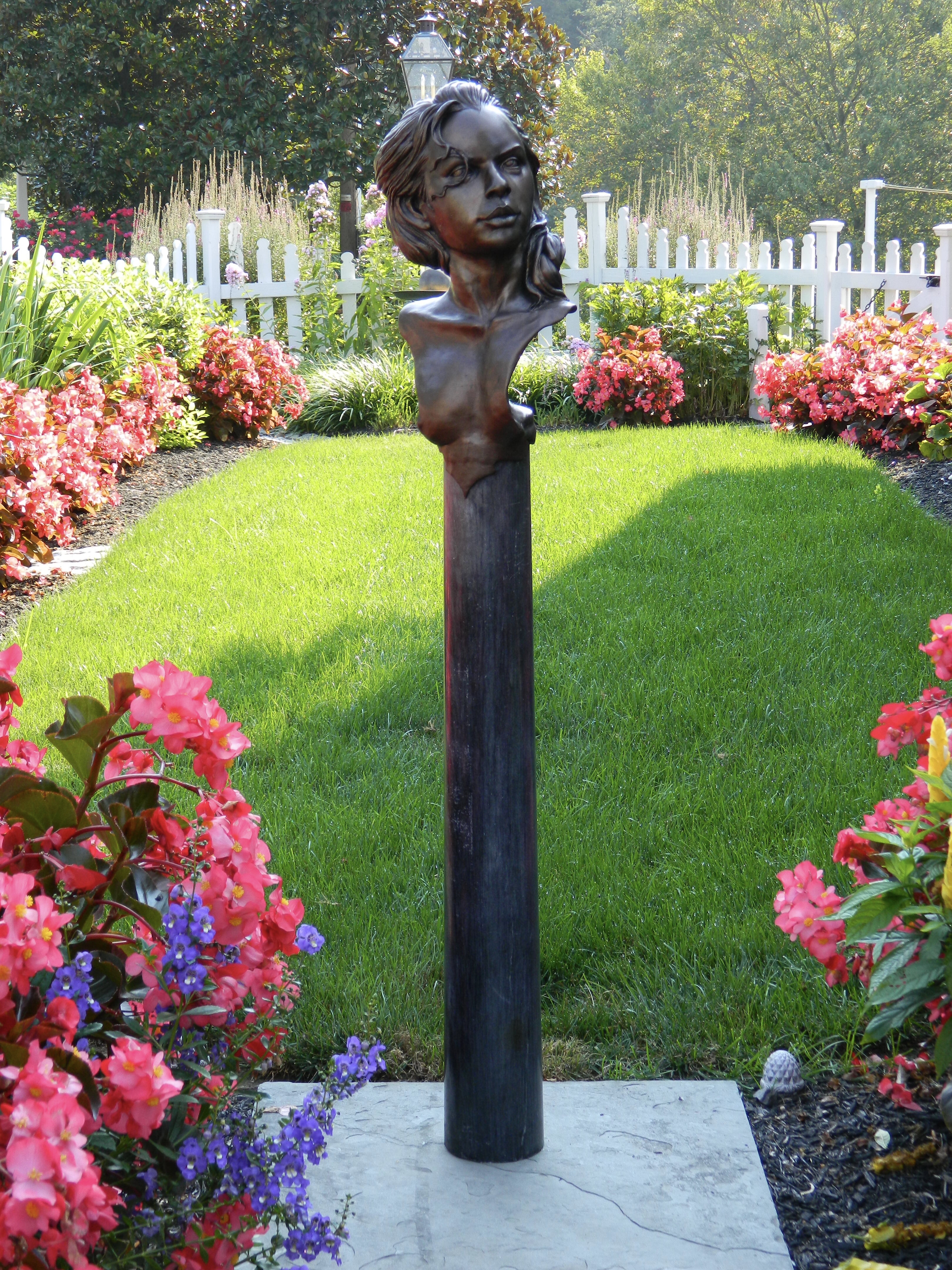 42”x 16”x 16” OOAK epoxy with bronze filled paint and patina. Slate column base.