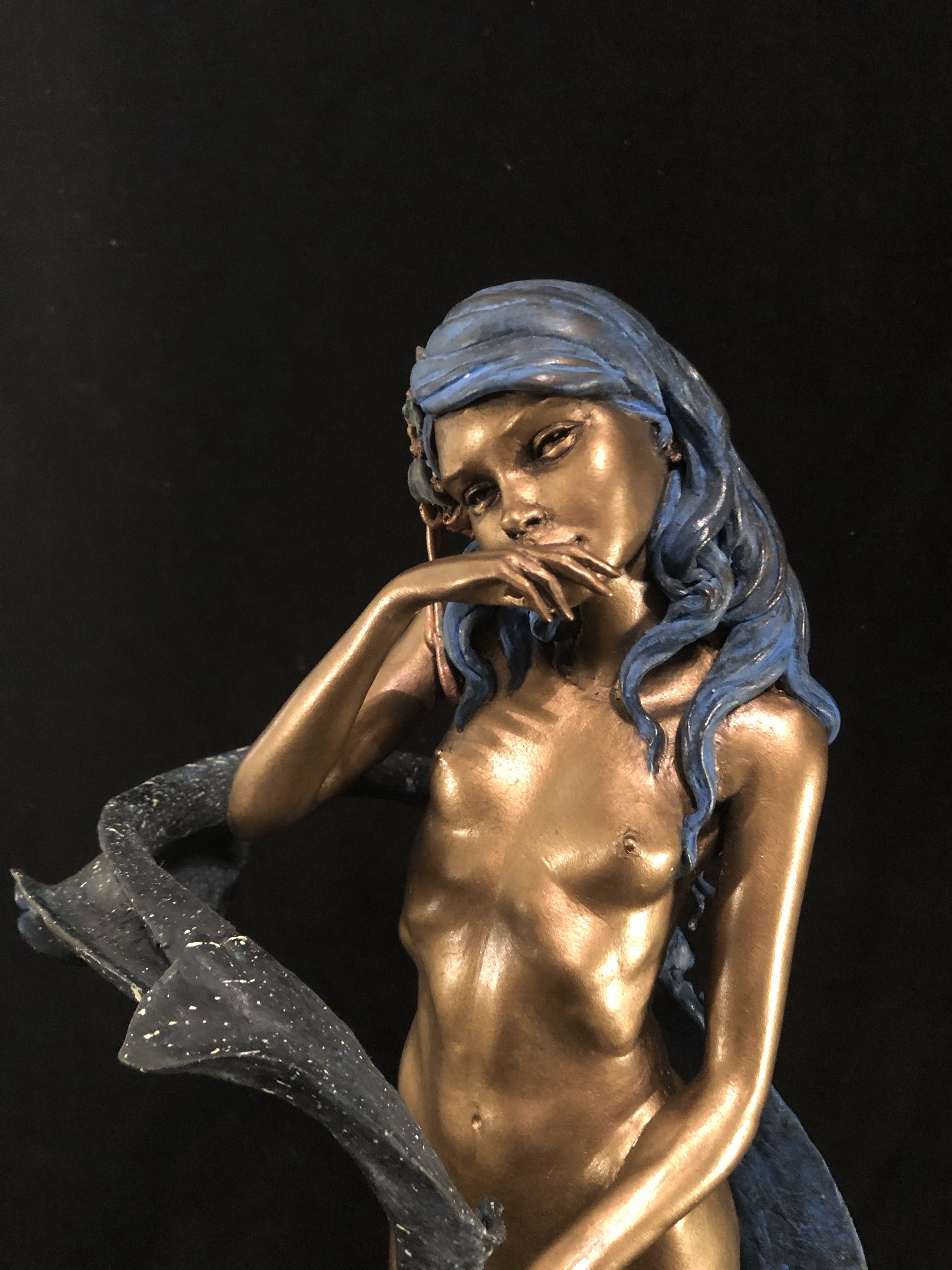 Have yourself or a loved one sculpted in polymer clay as an Art Doll. We will need a set of photos showing full front and side of the face as well as images to show body size and shape. Any choices of pose and clothing can be accommodated. Figures are about 16” tall sculpted in polymer clay with natural fiber hair, and your choice of clothing and base.