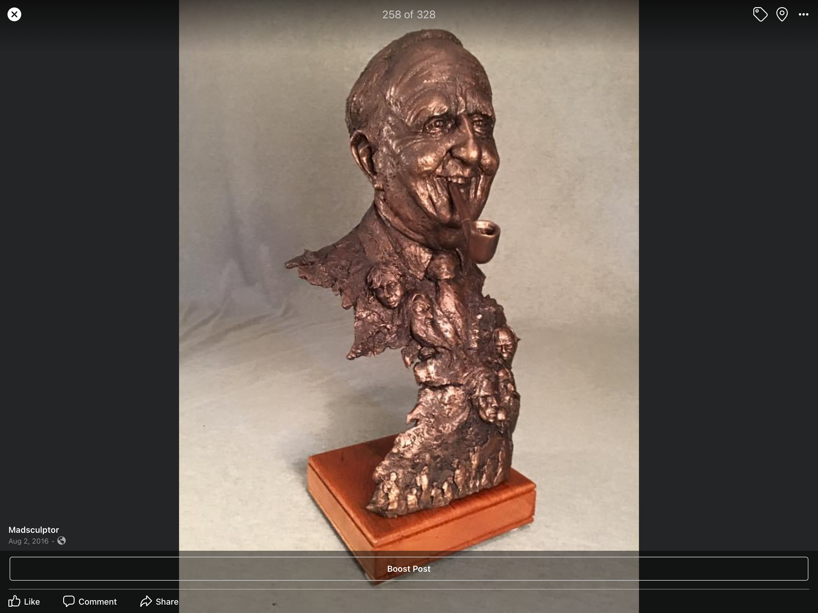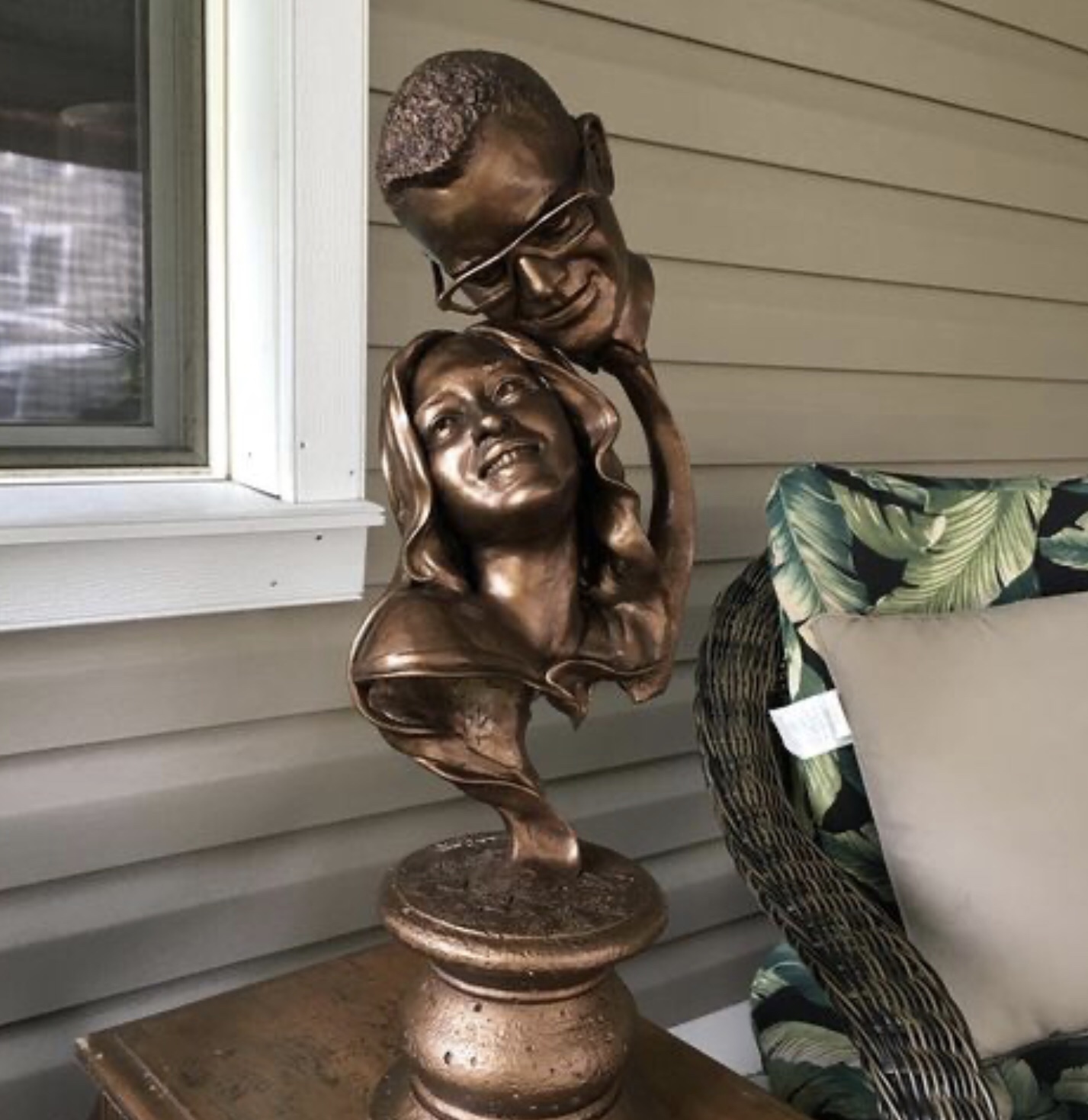 We are now offering epoxy portraits in addition to the polymer clay portraits. Epoxy portraits are made from a two part epoxy mix which is stabilized for exterior exposure. The process is simple for you, I need a set of photographs of the subject from the front and the side (an additional 3/4 view or candid shots of the subject will help to capture more of his or her character). I then sculpt a portrait of the subject. You will receive photos of the sculpture as I progress for approval. Once you have approved the sculpt, it gets coated in a bronze powder filled paint and treated with chemicals to achieve a patina. The sculpture is coated with an exterior grade sealer and shipped to you.
